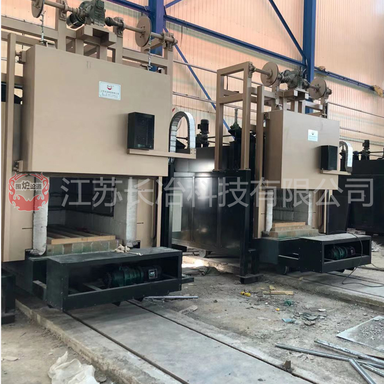 台车炉 石钢台车炉 本型电加热台车炉由固定支撑底脚、炉壳升降驱动装置,活动炉壳、炉衬、加热器、风循环导流系统,炉门及升降机构、炉门气动压紧装置、台车及行走牵引机构、电气控制系统等组成。 在线咨询 产品详情 A-2设备主体结构 本型电加热台车炉由固定支撑底脚、炉壳升降驱动装置,活动炉壳、炉衬、加热器、风循环导流系统,炉门及升降机构、炉门气动压紧装置、台车及行走牵引机构、电气控制系统等组成。 A-2.1固定支撑底脚共4只,用化学螺栓固定在地基上,采用钢管、法兰、加强筋板焊接制作。用于支撑整个活动炉壳。 A-2.2炉壳升降驱动装置由1台双出轴驱动减速电机、2个传动箱和4台升降机组成,具有同步性和稳定性,炉壳升降驱动装置与活动炉壳安装连接组合为一体,4台升降机的法兰连接端与4只固定支撑底脚连接,从而实现整个炉壳的升降。 A-2.3活动炉壳采用Q235不同规格的型钢和5~16mm厚的钢板焊接制作,确保有足够的刚度和热强性。外炉壁温升≤40℃。 A-2.4炉衬:炉顶用国际著名公司陶瓷纤维板作炉膛顶部的耐火层,该棉砖具有极小的线收缩率(1000℃下加热过程中仅仅收缩1.3mm)。 炉衬两侧墙、后墙耐火层采用陶瓷纤维板,用专用的高温粘结剂砌筑为整体炉膛,炉墙转角处圆角过渡,总厚度约350mm。 炉门口采用高铝砖砌筑,留出适当的膨胀缝,以避免取料装料过程中,难免的擦挂和碰撞,使炉门口损坏而导致密封不严,产生热泄漏。 整体炉衬使用寿命在4年以上。 A-2.5加热元件采用瑞典康泰尔材质电阻带,绕制成波浪形,用∮6mm高温合金材质小钩逐波固定在墙面上。小钩用专用卡板固牢于高密度硬质纤维板上。电阻带装上后用扎丝绑扎,台车上加热器平行放置在炉底高铝搁砖上,局部地方用小钩绑扎固定。 加热元件引出棒采用瑞典康泰尔,直径∮20,长期高温下使用不会因烧损而断裂。 A-2.6台车用型钢和Q235/δ10mm钢板组焊成单层车架和车体。台车采用自行走方式。电动减速机双排套筒滚子链牵引多对走轮行走在地面的钢轨上,牵引机构及走轮处于在炉外空气中、不会受热变形。 牵引机构安装于车体前端箱体内,维护方便;牵引机构的动力线设采用专用的电缆卷筒,布置在车体的一侧,随车移动收放,安全且美观。 炉底加热器的动力配电是靠弹性动静导电铜触头压紧而实现的,弹性动触头固定在台车后端,炉底加热器的导线与各触头连接固牢,随车移动。 当台车驶进到炉膛终点位置时,台车上的动触头在驱动机械作用力下,压紧固定在固定支撑框架相对位置的静触头,接通而导电。 台车驶离炉膛外时,触头断开,切断电源,为了防止机械惯性产生撞击,损坏触头,所以触头设计成可以弹性伸缩,以消除和削弱瞬间刚性碰撞产生的破坏力。 台车内衬因为承载重物,又布置有加热器,为保证足够的强度,采用非标特制高铝砖、轻质高强度耐火砖、高铝搁砖和优质保温砖混砌方式。 车体上有瑞典253MA材质的炉底板,复盖在加热器之上,以承载工件,并防止金属氧化皮掉入到底部,引起短路故障。 炉底板设计成带有凸筋和沟槽相间的结构。凸筋高60mm,厚25mm,沟槽宽100mm以上。凸筋侧面预留出多个通孔。工装放在凸筋之上,有利于热量的均匀传导和全方位的辐射。 炉底板平面放置在台车车体四周砖的砌体上,四周砖砌体上也设计有一定数量的方孔散热,不仅改善炉底板下加热元件的恶劣工作环境,还强化了底部热的辐射能力。 炉底加热元件保证一年以上不修理。 A-2.7密封:台车体与炉体结合部采用框式密封,炉壳底部框型结构包覆耐火纤维布,炉壳由驱动装置实现升降,行程100mm,落下后压在台车边框上。该密封形式结构简单、可靠,严密性好。 炉门与门框的密封方式:在炉门两侧上、下位置各安装2套精密伺服电缸拉杆,炉门落下到位后,电缸通过拉杆和拉钩将炉门压紧在门框上。 电缸压紧机构受电气系统控制,自动进行。 A-2.8炉膛配置炉用循环风机和循环导流系统,风机轴材质SUS310(进口),导流板及叶轮材质SUS310(进口)。 固定导流板的钢结构架材质瑞典253MA。 导流板可以单独拆装,方便炉墙加热器出现故障时检修。 A-2.9双路显示炉温,且能独立控制,一般情况由电脑控制炉温,可切换到另一路仪表控制,能够控制升温速度,三台退火炉集中控制; A-2.10热电偶采用高温双芯S偶,用于温控和记录,热电偶长度合适,外露部分不短于150mm(不包含接线盒),安装固定采用法兰连接; A-2.11选用台湾研华公司通用型工业控制计算机,I7处理器,内存≥16G。按炉型配电源柜和仪表柜,电源电压显示、电流显示齐全,工作状态指示,电控系统为长冶程序表控制功率调制器进行炉温控制,计算机可输入工艺曲线并且进行炉温监控记录。可控硅过流及过热各保护、报警功能齐全。控制系统具有计算机控制、仪表控制、手动控制和PLC控制等功能。软件终身免费升级无自锁设置。双路显示炉温,能独立控制,一般情况由电脑控制炉温,可切换到另一路仪表控制,能够控制升温速度,三个台车炉集中控制;计算机界面可同时显示热处理炉运行情况。补偿导线为耐高温补偿导线。按炉子结构配炉体操作配电盘,各电机保护、各限位齐全,实现对台车、炉门密封的控制。设备所带各种仪表、热电偶等必须按国标要求经检定合格、色标齐全方可安装使用。 A-2.12配备专用料筐,料筐材质310S,满足试样Φ30-Φ100试样退